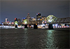 Этот участок реки сочетает природную красоту и индустриальный характер: движение судов, широкая водная гладь и панорамы двух городов создают атмосферу классического американского речного пейзажа.