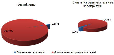- Через платёжные терминалы в 2009 году было продано 0,5% авиабилетов и 3,2% билетов на развлекательные мероприятия