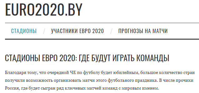Проект euro2020.by предоставляет уникальную возможность для любителей и болельщиков футбола. Именно на просторах данного проекта будет предоставлена подробная и наиболее интересная информация, касающаяся непосредственно чемпионата Европы по футболу 2020. Проект выполнен в простом и интуитивно понятном варианте. Вся информация рассортирована по соответствующим разделам, что еще больше упрощает его использование.