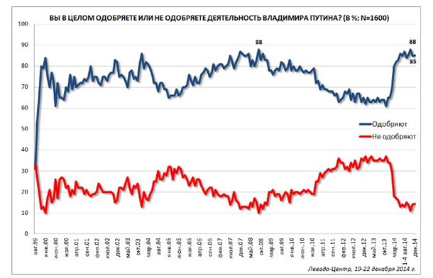 Опрос проведен 21-24 ноября 2014 года по репрезентативной всероссийской выборке городского и сельского населения среди 1,6 тысячи человек в возрасте от 18 лет и старше в 134 населенных пунктах 46 регионов страны.