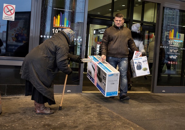 Между тем сказка о великой стране все же начинает давать трещины. Глядя на таблички с курсами обмена валют, люди постепенно осознают, насколько серьезна нынешняя ситуация. Так, британское издание Economist назвало это явление победой холодильника над телевизором: в случае, если продукты дорожают, телевизионная болтовня о величии страны становится все менее правдоподобной.