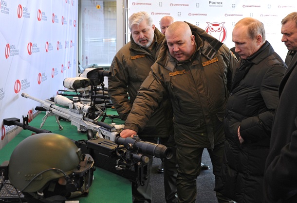 Путин осматривает оружие