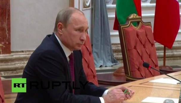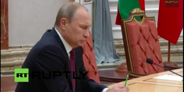 Не обошлось и без курьезов - журналист российского канала LifeNews обгавкал украинскую журналистку с 1+1, а Владимир Путин пошел по стопам Виктора Януковича и в ходе встречи сломал ручку. Это видно на кадрах телеканала RT: