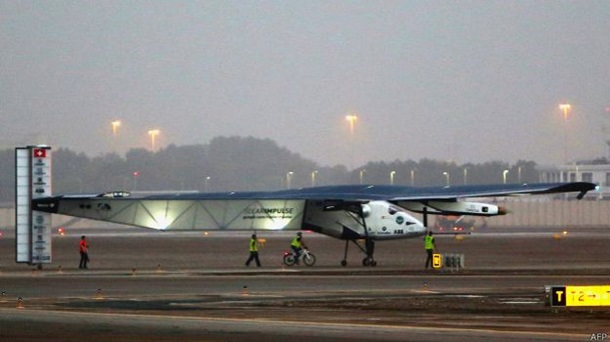 Самолет, питающийся от солнечных батарей, поднялся в воздух в Абу-Даби, чтобы установить мировой рекорд кругосветного полета.