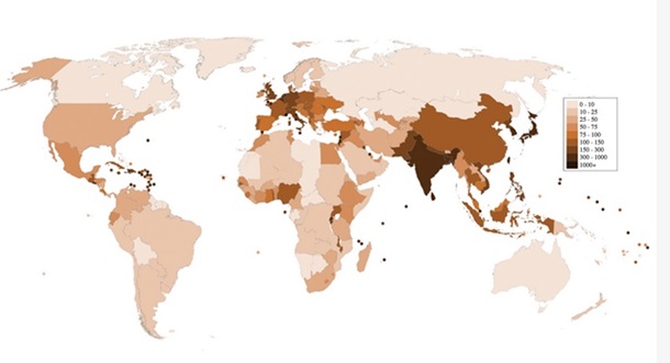 Наиболее многочисленными народами на сегодня есть индийцы и китайцы, также в пятерку самых "тесных" стран вошли Монако, Сингапур, Ватикан, Мальта и Мальдивы.