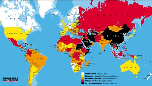 Данный показатель ежегодно оценивает по всему миру организация "Репортеры без границ". Для этой цели она высылает опросы в мировые новостные агентства, а также рядовым журналистам, корреспондентам, исследователям, юристам и активистам в сфере защиты прав человека. В 2013 году самыми свободными оказались Финляндия, Нидерланды, Норвегия, Люксембург и Андорра. Россия заняла в этом списке 148 место.