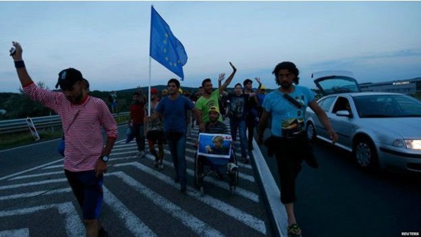 Несколько сот человек ушли с будапештского вокзала Келети в сторону австрийской границы после противостояния с полицейскими, отказавшись направиться в венгерские лагеря для беженцев и пройти процедуру регистрации. Некоторые из них, как сообщал находившийся среди них корреспондент Би-би-си Мэтью Прайс, несли большие фотографии германского канцлера Ангелы Меркель.