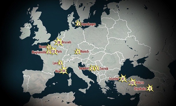 С начала 2016 года в результате терактов уже погибли 172 европейца.