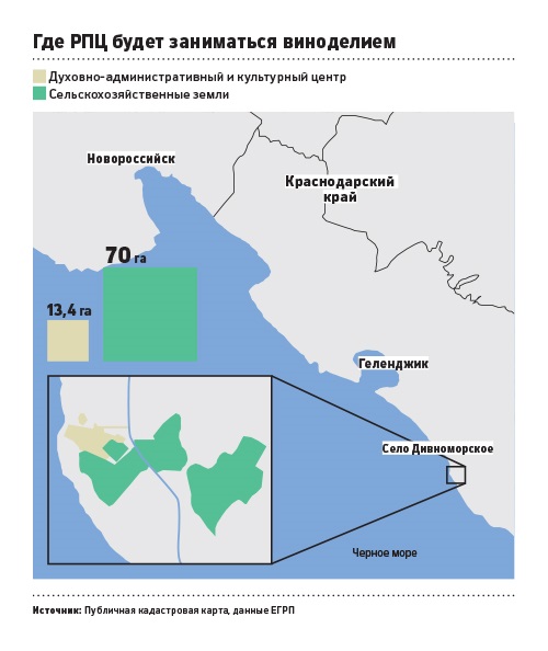 Газета рассказывает и о том, как были получены земли для виноградников РПЦ. Один из бывших владельцев участков рассказал, что несколько лет назад его "в добровольно-принудительном порядке" попросили продать землю для последующей передачи ее РПЦ.