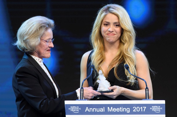 Знаменитая колумбийская певица Шакира, являющаяся также послом ЮНИСЕФ, также приехала в Давос. На форуме она получила премию Crystal Award за благотворительность (помощь с образованием детей в Колумбии).