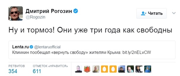 На сообщение Климкина в сети отреагировал российский вице-премьер Рогозин. "Ну и тормоз! Они уже три года как свободны", – написал российский чиновник.