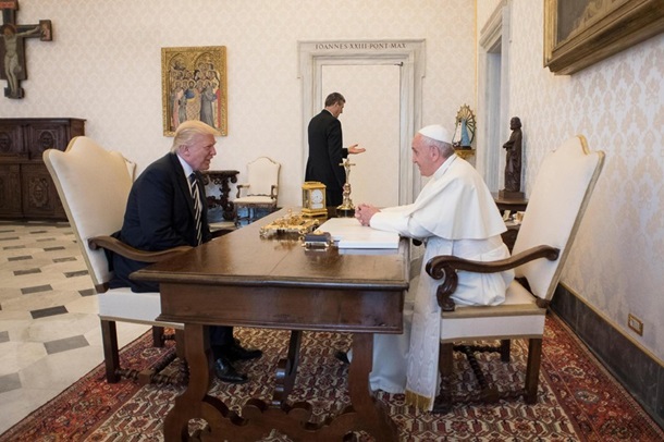 После визита в исламский мир Трамп полетел в Италию, где уже встретился с Папой римским Францисков Ватикане. Аудиенция продлилась 20 минут, на ней также присутствовали Мелания и Иванка Трамп.