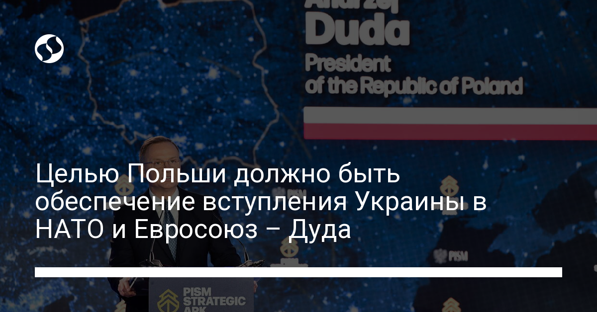 Целью Польши должно быть обеспечение вступления Украины в Евросоюз и НАТО. Об этом заявил президент страны Анджей Дуда, цитирует его PAP.