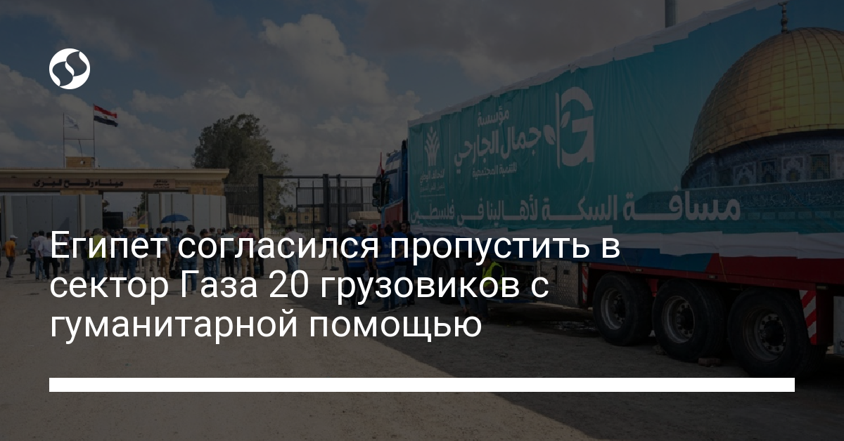 Президент Египта Абдул Фаттах Ас-Сиси и президент США Джо Байден договорились о разовой доставке гуманитарной помощи в Газу, Египет согласился пропустить только 20 грузовиков. Официальное сообщение офиса президента Египта цитирует CNN.