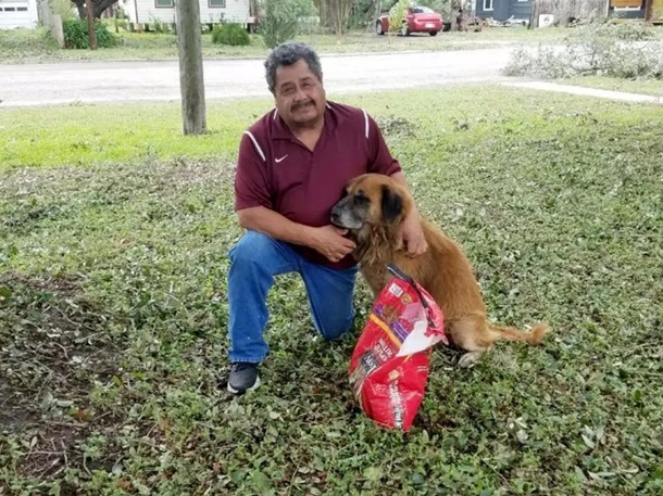 Другая жительница города на утро после шторма пошла проверять состояние домов эвакуировавшихся друзей и родных. На пути ей встретилась собака, которая просто шла по улице, держа большую пачку корма в зубах.