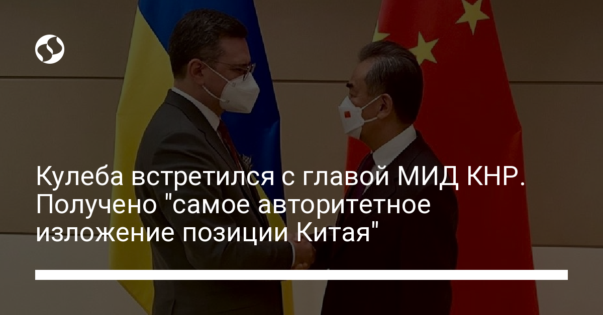 Кулеба написал это в Twitter, уточнив, что Ван И "подтвердил уважение Китаем суверенитета и территориальной целостности Украины, а также его неприятие применения силы как средства решения разногласий".