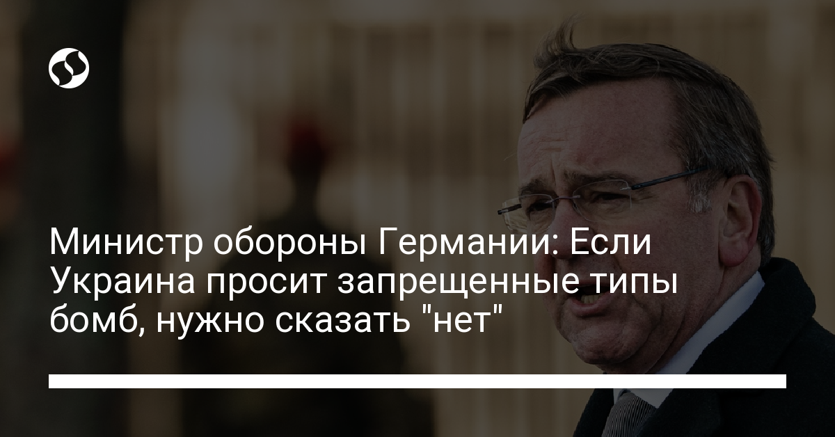 Министр обороны Германии: Если Украина просит запрещенные типы бомб, нужно сказать "нет"