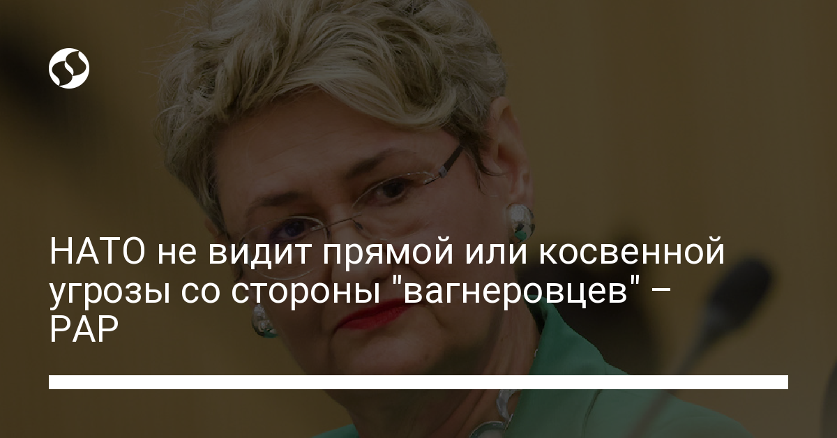 "НАТО внимательно следит за всей военной деятельностью в Беларуси. Мы не видим никакой прямой или косвенной военной угрозы от наемников ЧВК Вагнера нашим союзникам, но мы остаемся бдительными", – заявила она.