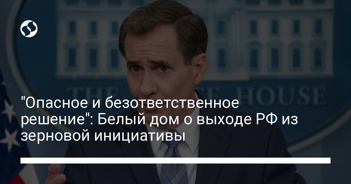 Комментируя заявление Кремля об отказе продлить участие России в зерновом соглашении, Кирби сказал, что "Россия будет нести полную и исключительную ответственность за последствия этого военного акта агрессии".
