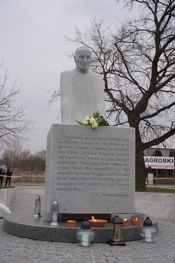 "Сегодня на Дороге мучеников Майданека в Люблине открыли памятник выдающемуся гуманисту, отцу Емельяну Ковчу, пастырю концлагеря Майданек", - говорится в сообщении.