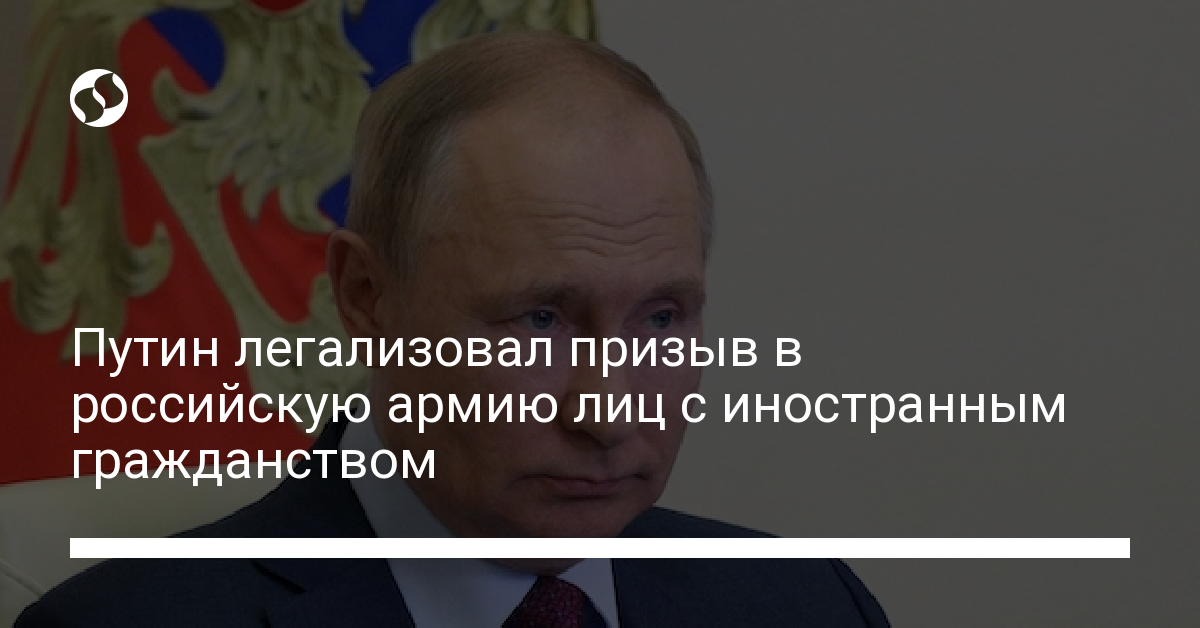 Российский диктатор Владимир Путин подписал указ, легализующий призыв в армию РФ лиц со вторым гражданством. Документ опубликован на портале правовой информации.