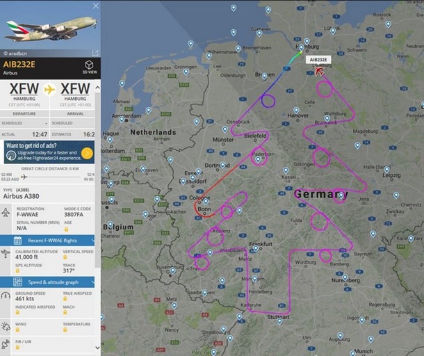Самолет полетел от Гамбурга на юг и вернулся назад, "рисуя" по дороге елку