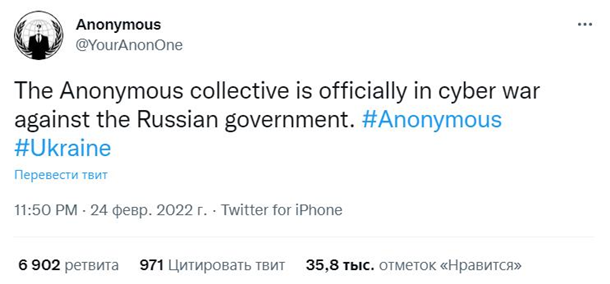 Коллектив сети хакеров Anonymous официально ведет кибервойну против российского правительства.