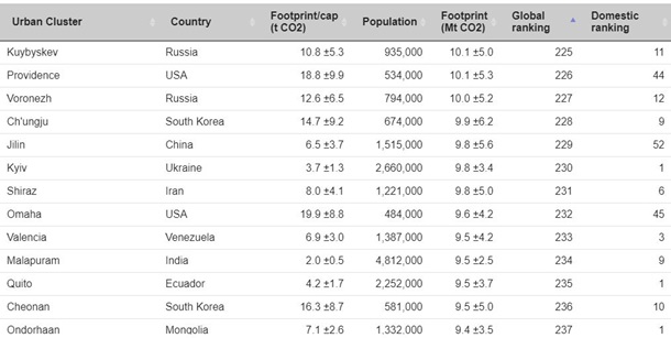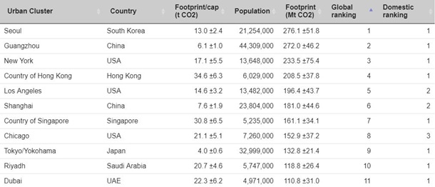 Также в десятку попали Шанхай (181 мегатонна), Сингапур (161,1 мегатонны), Чикаго (152,9 мегатонны), агломерация Токио и Йокогама (132,8 мегатонны) и Эр-Рияд (118,8 мегатонны).