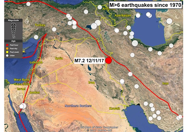Эпицентр находился в 30 километрах к юго-западу от иракского города Халабджа. В районе землетрясения находятся мелкие населенные пункты и деревни, поэтому большего числа жертв удалось избежать.
