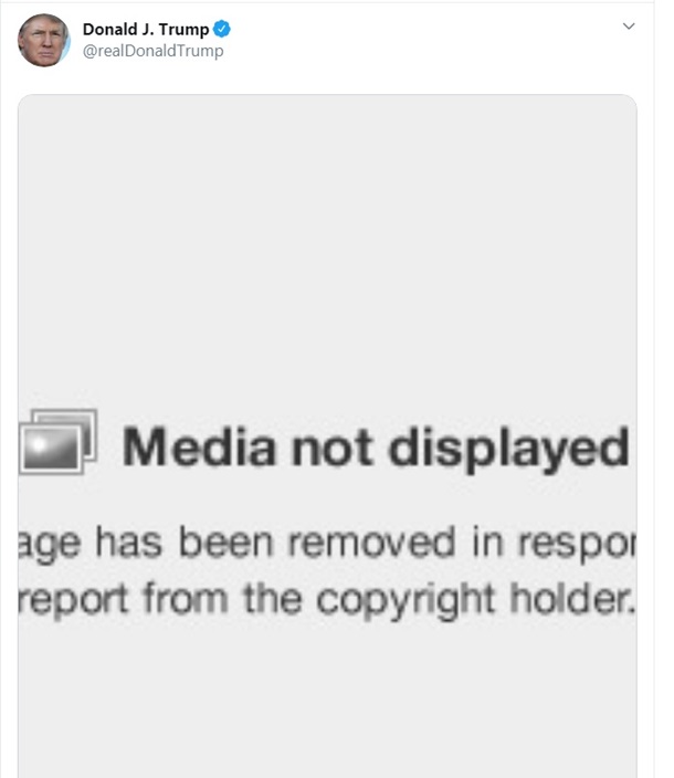 Соцсеть Twitter в очередной раз наказала президента США Дональда Трампа, удалив фото из его сообщения из-за нарушение авторских прав.