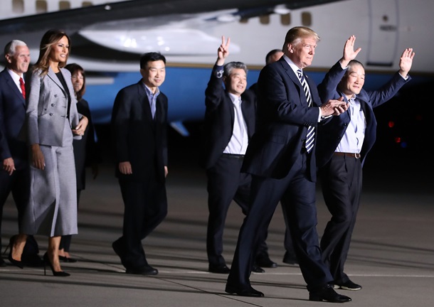 При этом американский президент поблагодарил лидера Ким Чен Ына за недавнее освобождение американских граждан, назвав это "красивым жестом, который в США очень ценят".