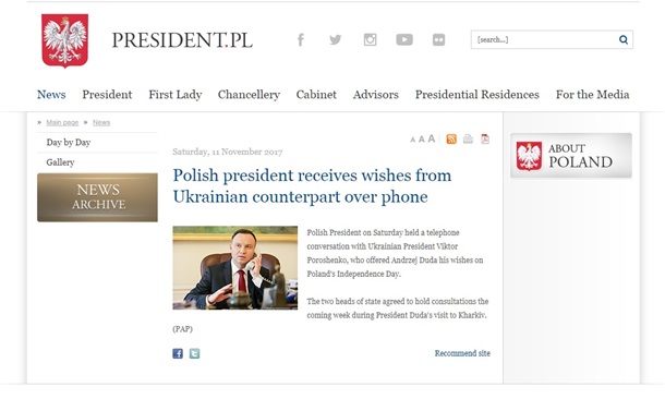 На официальном сайте президента Польши Анджея Дуды имя президента Украина Петра Порошенко перепутали.