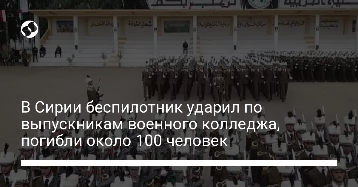Неизвестный беспилотник нанес удар по участникам выпускной церемонии военного колледжа в сирийском Хомсе. Погибло более 100 человек, около 125 ранены, сообщает мониторинговая группа The Syrian Observatory for Human Rights (SOHR).