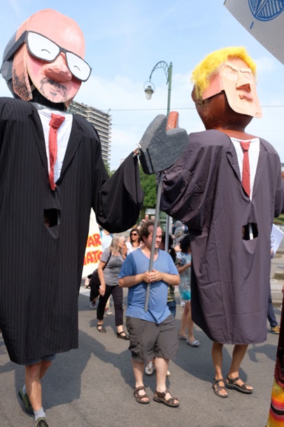 К протесту присоединились противники угольных и атомных станций, расизма и сексизма и мер строгой экономии.