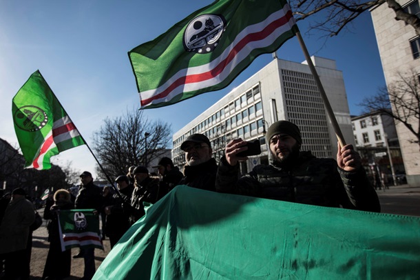 А среди демонстрантов в Берлине встречались люди с флагами непризнанной Ичкерии.