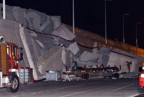 Бетонные плиты пирса рухнули на дорогу. Фото: ЕРА