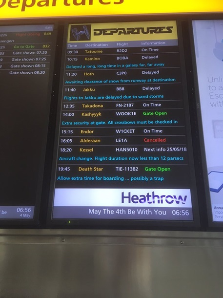На табло в Хитроу появились рейсы на Татуин и Джакку