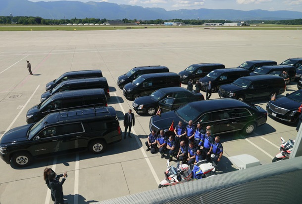 18:18 Байден во вторник прибыл в Женеву. В аэропорту Байдена встречал президент Швейцарии Ги Пармелен и глава женевского кантонального правительства Серж Даль Бюско. Американского президента ожидал эскорт из более двух десятков машин.