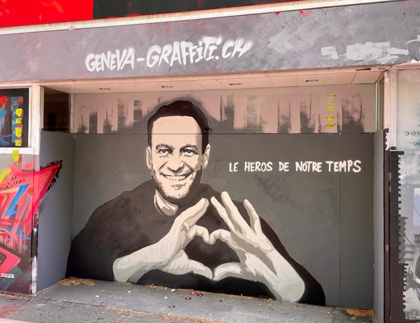 Кроме того, 14 июня, швейцарский художник Джулиен Баро нарисовал граффити с Навальным - такое же было закрашено в Санкт-Петербурге. На граффити в Женеве есть надпись Герой нашего времени (Le hros de notre temps).