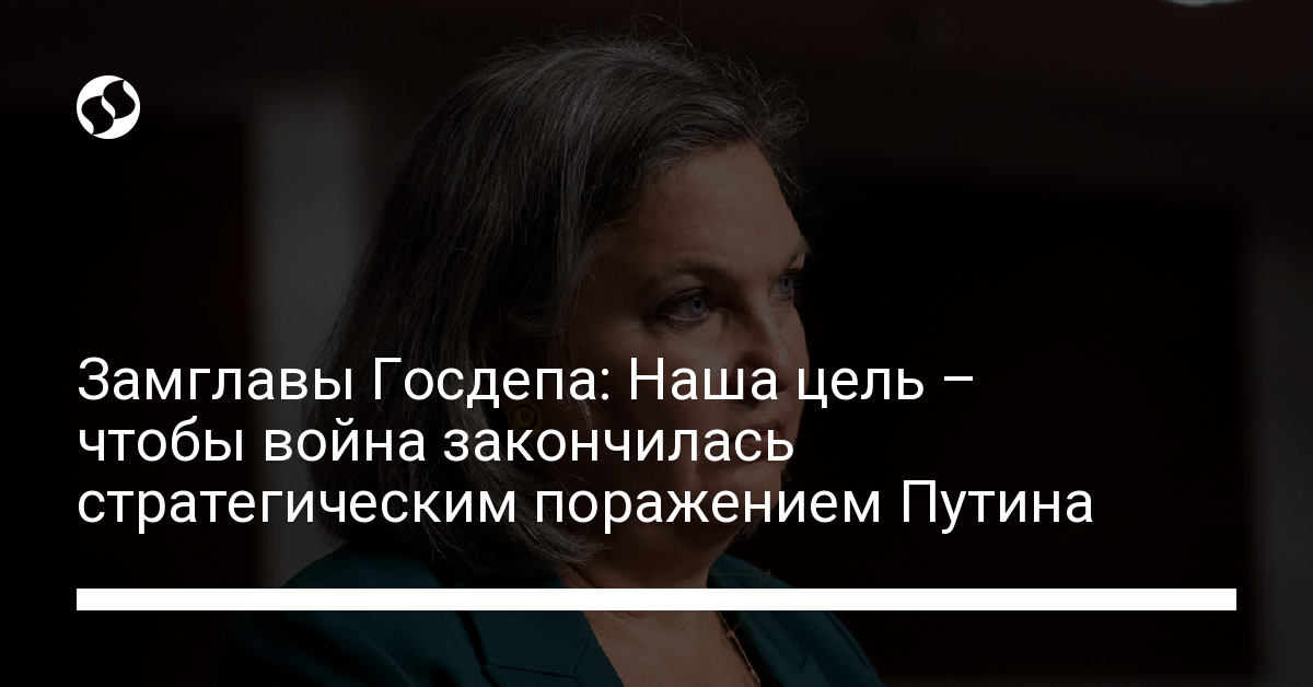 Основная задача руководства США по Украине в этой агрессивной войне России – стратегическое поражение режима российского диктатора Владимира Путина. Об этом заявила в интервью российскому изданию Медуза заместительница главы Госдепартамента США Виктория Нуланд.